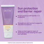 Skiom BioBalance SPF 50 PA++++ is more than just sunscreen—it’s advanced daily care for your skin and its microbiome. Sun exposure doesn’t only cause tanning, sunburn, and premature aging; UVA and UVB rays also weaken collagen, dehydrate the skin, and disrupt its delicate microbiome, leaving it vulnerable to dryness, inflammation, and imbalance. This formula is designed to protect, repair, and restore in one step.